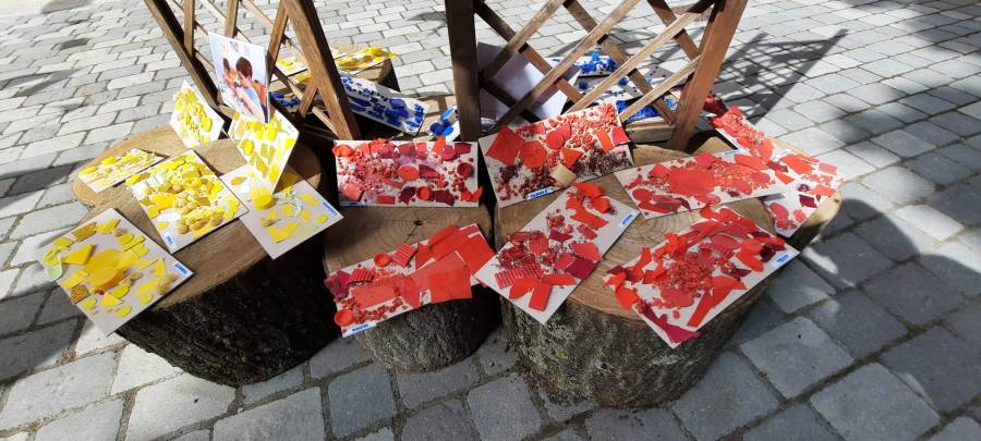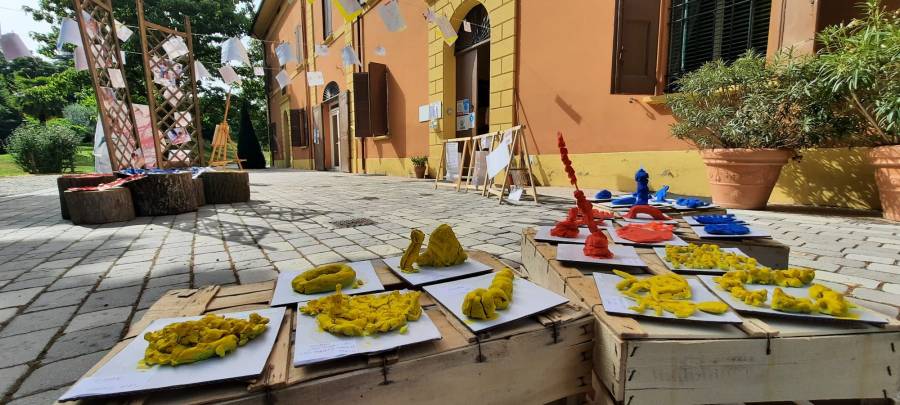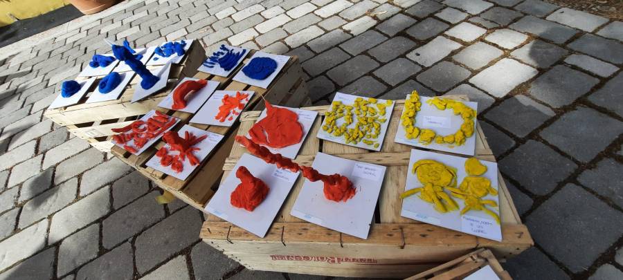 È stato un viaggio sfumato tra il rosso, il giallo e il blu, ci siamo divisi in tre formidabili squadre di artisti che hanno esplorato tutte le differenti variazioni cromatiche conosciute e ricreabili. Attraverso le tre dimensioni siamo passati dal creare sfumature con la pittura, a trasformare l’immagine bidimensionale del foglio in un collage materico con vari elementi di quello stesso colore, finendo col dare vita ad un artefatto, esito ultimo del colore che si fa modellabile, evoluzione finale del colore, che ha acquisito addirittura forme tridimensionali.