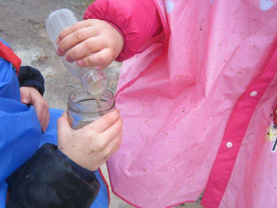 Terre, sabbie, fango, legni, cortecce, rami, tronchi, radici, foglie, erba, semi, pigne, sassi, acqua, con le loro infinite sfumature e diversità, potenziano la percezione e la discriminazione: il piacere di toccare, di sentire l’odore, vedere il colore, scoprire le caratteristiche della materia; attraverso la manipolazione poi, favoriscono abilità, manualità fine e l’espressione di stati emotivi, con lo sviluppo di un pensiero divergente e creativo, poiché le cose non hanno un unico colore, ma varie SFUMATURE, come la nostra pelle…