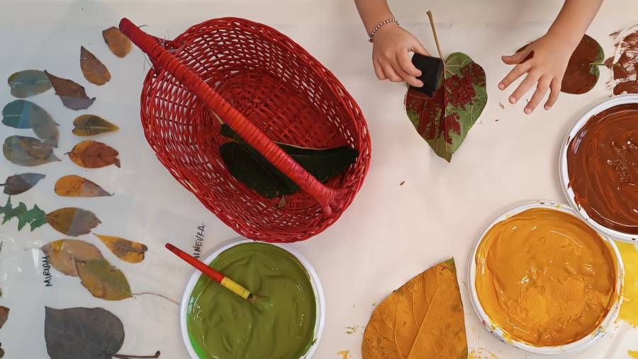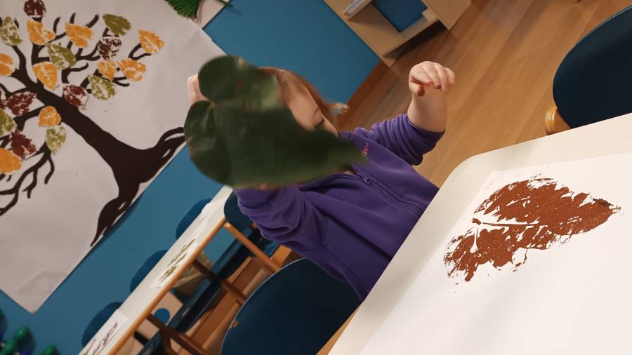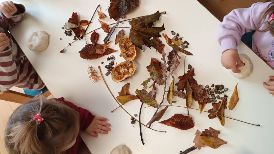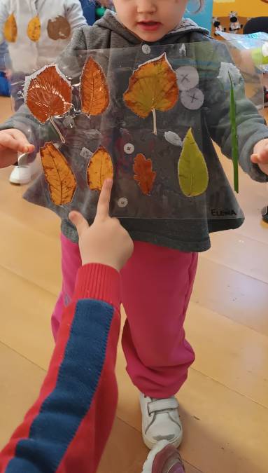 Abbiamo cominciato con l’esplorare il giardino boschivo della nostra scuola e raccogliendo i nostri “tesori d’autunno, muniti di cestini e con gli occhi colmi di meraviglia. Il primo compito dei piccoli esploratori è stato quello di cercare e scegliere le foglie “più belle”, sensibilizzando lo sguardo e operando una selezione dei materiali raccolti. Dopo averli plastificati, non soltanto i bambini hanno potuto osservare più attentamente le diverse forme delle foglie e le tante sfumature di colore dell’autunno, ma hanno anche costruito una prima “raccolta collettiva” facendo entrare la natura nel loro ambiente quotidiano.