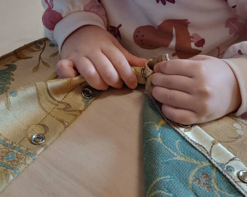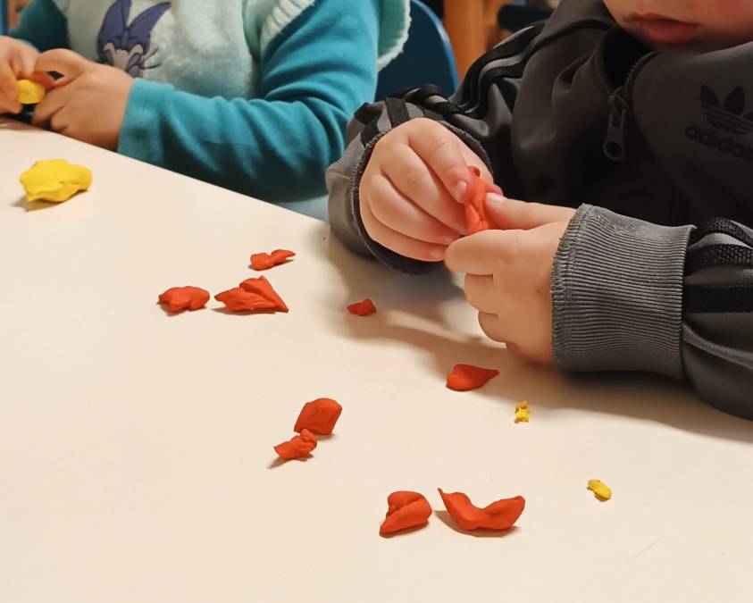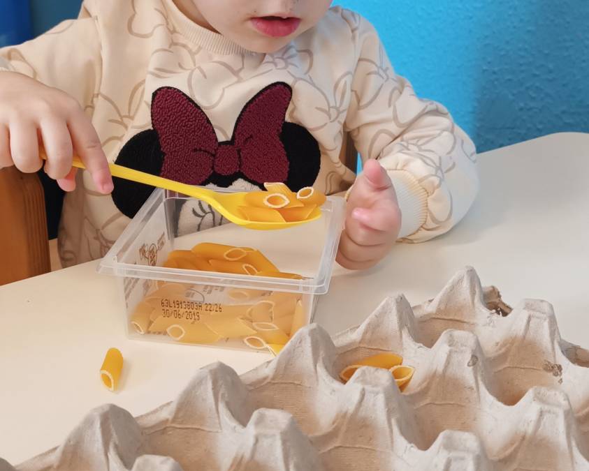 A partire da questo assunto pedagogico fondamentale, abbiamo deciso di avviare il nostro percorso educativo predisponendo alcune esperienze manipolative e di “gioco euristico” con diversi materiali, a un primo sguardo semplici, ma basilari per lo sviluppo di tutte quelle abilità manuali che definiamo “motricità fine”. Prendere, incastrare, infilare, spezzettare…è impegnandosi in queste attività, essenziali anche per le autonomie quotidiane, che le nostre mani compiono movimenti sempre più precisi, coordinandosi con l’abilità visuo-spaziale, favorendo la concentrazione e lo sviluppo cognitivo. In altre parole, abbiamo offerto ai bambini spazi di scoperta e sperimentazione, in cui poter esprimere loro stessi e mettere alla prova le proprie capacità, valorizzandone i “processi d’azione”.